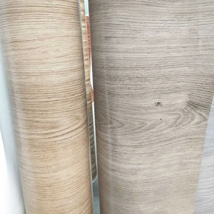 დეკორატიული PVC ფილმი ხის მარცვლეული დაბეჭდილი ფილმი იატაკისთვის.